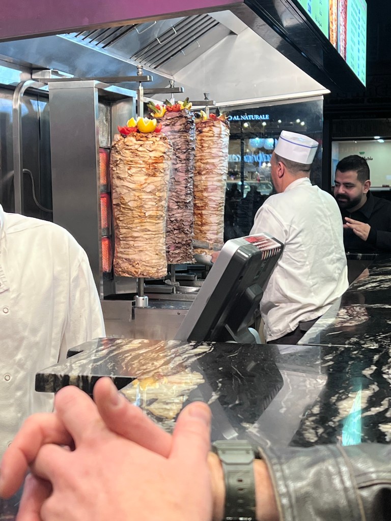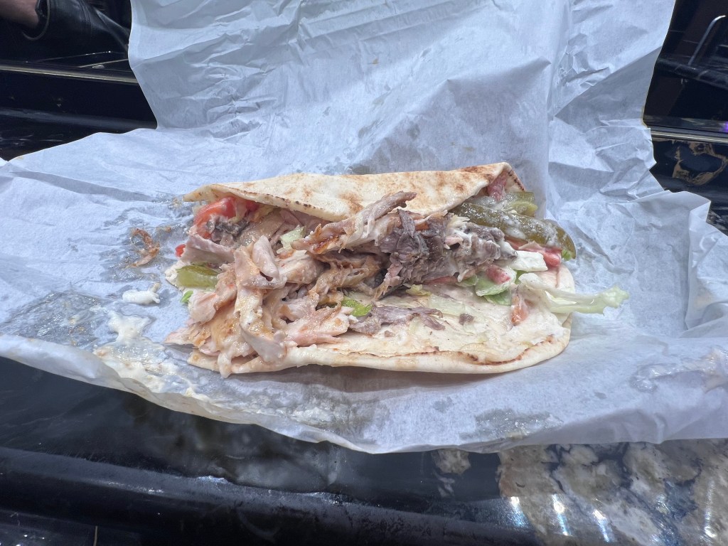 No matter what anyones opinion is on cultures, due to my past experiences overseas, I absolutely love any type of Arabic food. After our first night I caught a glimpse of a local Schwarma restaurant which was packed wall to wall with patrons. After a night out at the pub I found myself grabbing a pita full of deliciousness and headed back to our hotel room. My beautiful girlfriend didn’t know what to expect, but after the smell of the Lamb and Chicken hit her, it was only a matter of time until she needed a bite. Another food introduced to the love of my life!