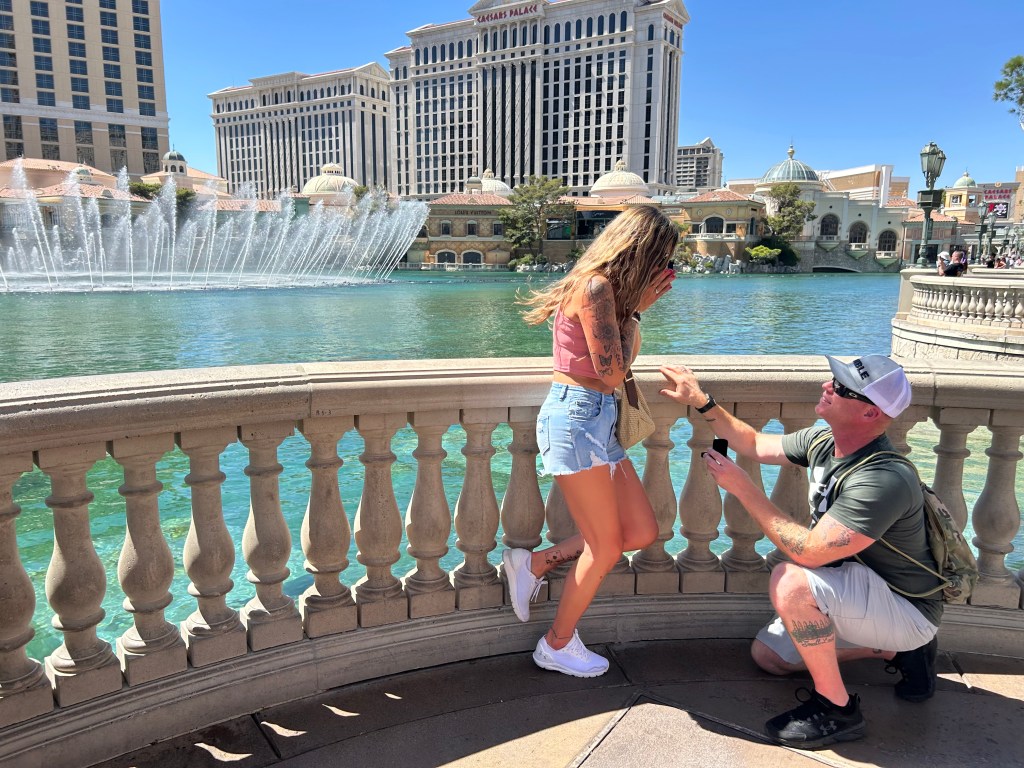 After realizing that I would have to walk around Vegas for 2 days without asking her to marry me I knew that it would drive me insane. It had to be on day one of the trip, and it had to be special. I figured I would get a fancy restaurant that first night that overlooks the Bellagio fountain to make it a romantic event.